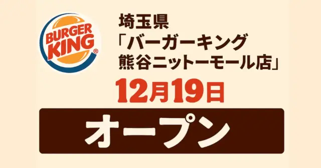 埼玉県熊谷市エリアに『バーガーキング熊谷ニットーモール店』が、2025年12月19日(... グルメ