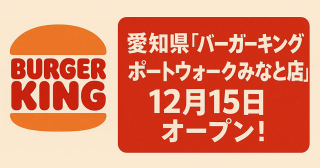 愛知県『バーガーキングポートウォークみなと店』12月15日オープン!