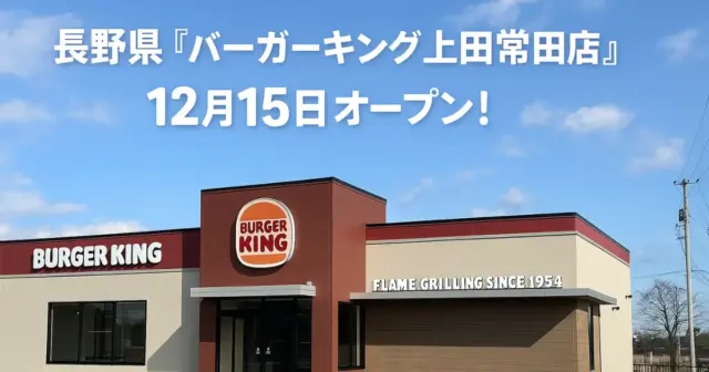 長野県上田市エリアに『バーガーキング上田常田店』が、2025年12月15日(月)オープ... グルメ