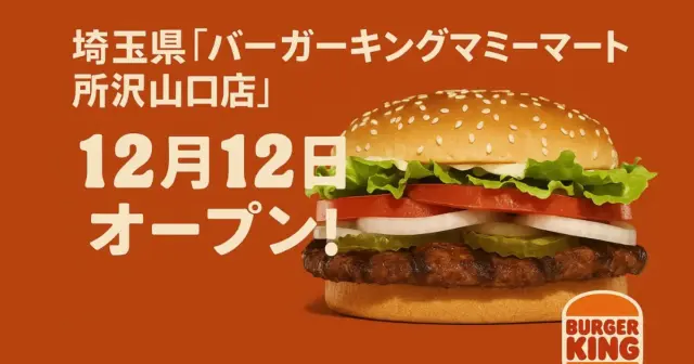 埼玉県所沢市エリアに『バーガーキングマミーマート所沢山口店』が、2025年12月12...