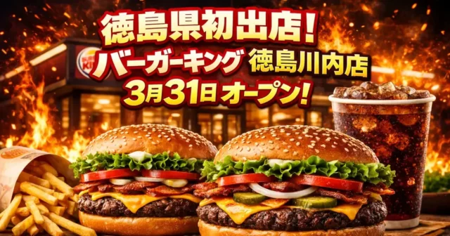 徳島市内で初出店となる『バーガーキング 徳島川内店』が、2026年3月31日(火)10時... グルメ