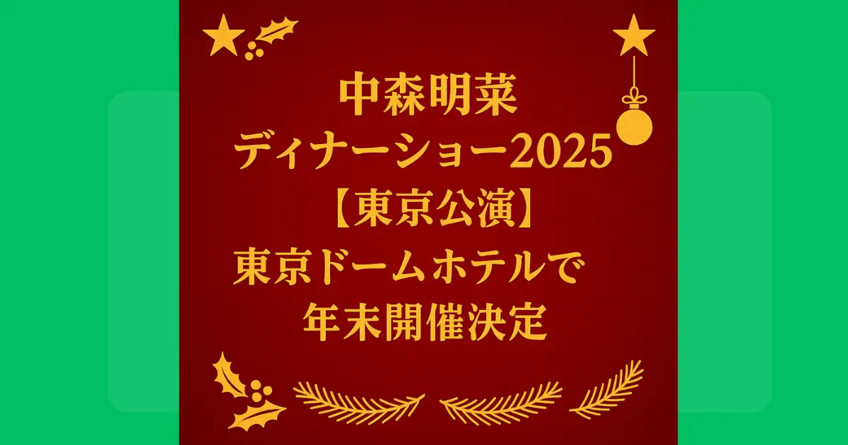▶ 中森明菜ディナーショー2025【大阪公演】の詳細はこちら