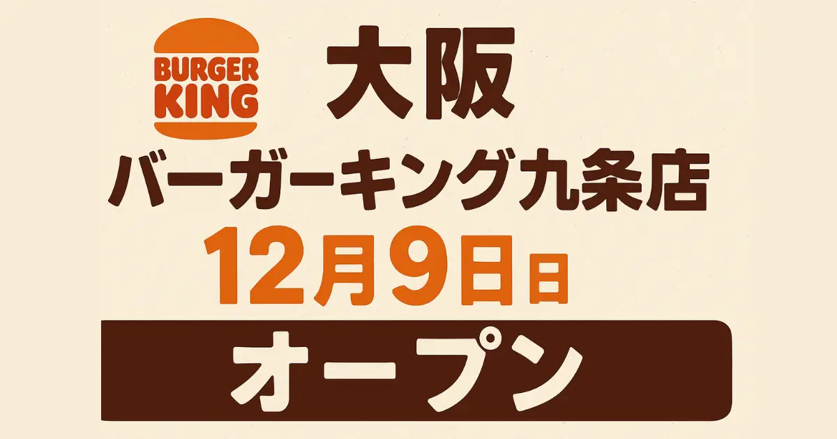 大阪・九条エリアに、話題の本格バーガーショップ 「バーガーキング九条店」 が 2025年12月9日 に待望のオープン!