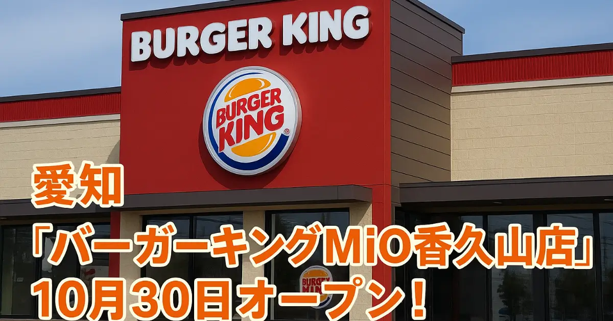 2025年10月30日(木)にオープンする「バーガーキングMiO香久山店」は、愛知県日進市のショッピングセンター内という便利な立地にあり、家族連れや学生、ビジネスパーソンまで幅広い層が利用しやすい新店舗です。
