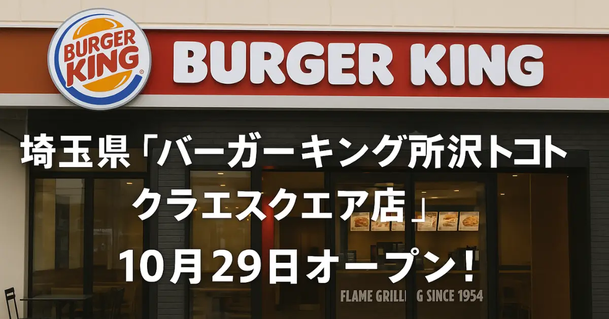 2025年10月29日(水)にオープンする「バーガーキング® 所沢トコトコスクエア店」は、アクセスの良さと本格バーガーの美味しさを兼ね備えた注目の新店舗です。