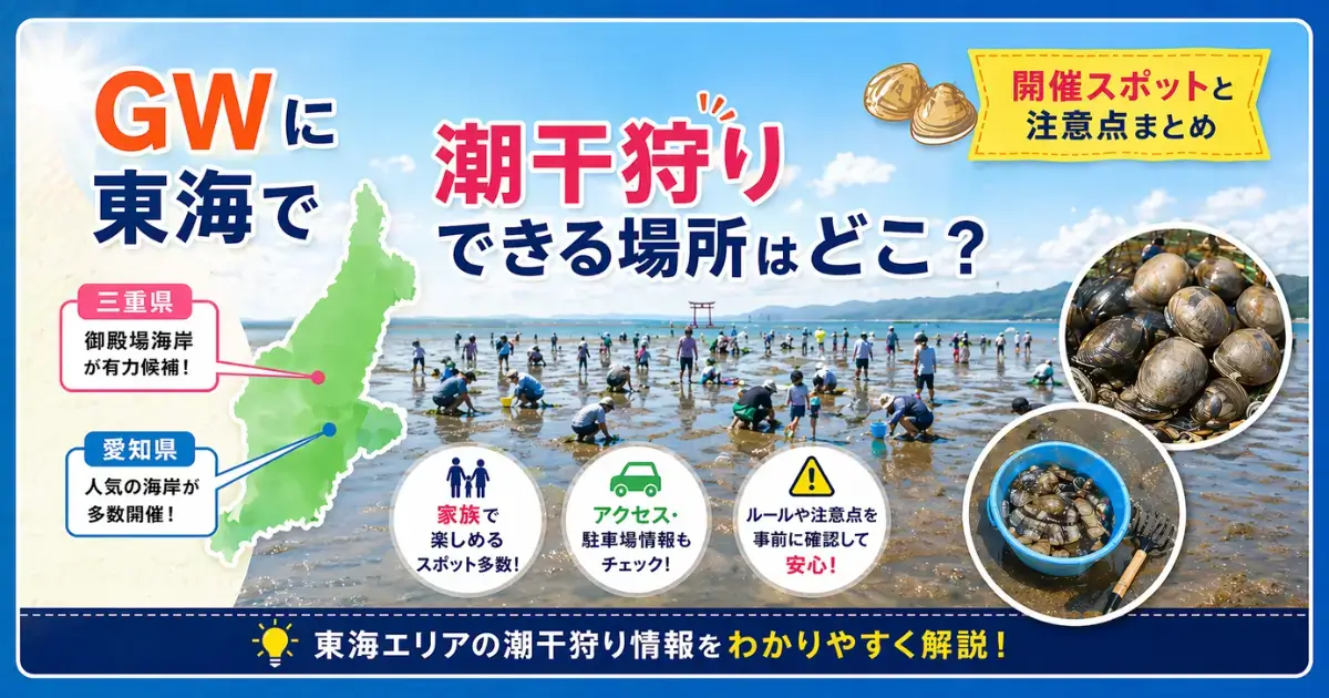 この記事では、東海の潮干狩り事情をわかりやすく整理しながら、GWに候補にしやすい場所と注意点をまとめて紹介します。