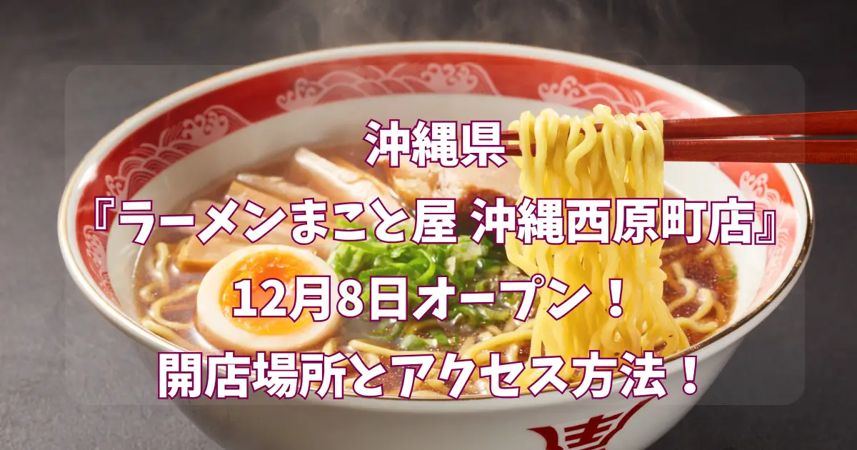 この記事では、沖縄県『ラーメンまこと屋 沖縄西原町店』12月8日オープン!開店場所とアクセス方法について紹介します。