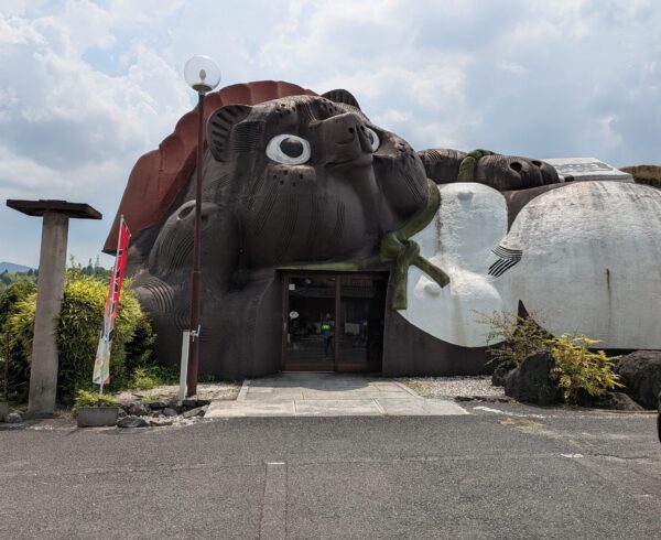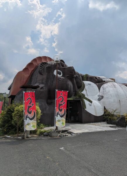 国道307号線沿いで、大きなたぬき像が目印です。