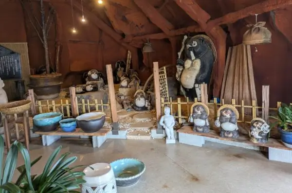 信楽の山間に現れる巨大なたぬき像が目印の「狸家分福」。